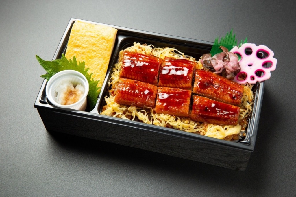 鰻の蒲焼きをのせたご飯と4種の手まり寿司が彩りを添えます。